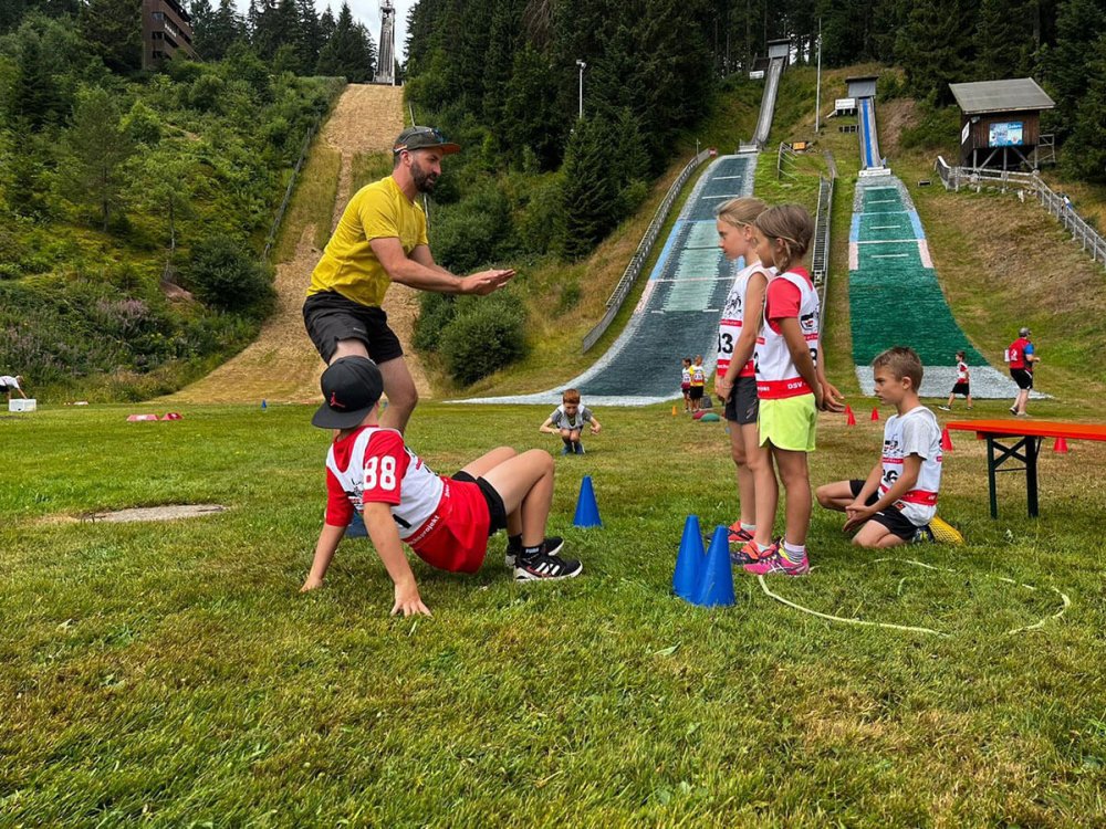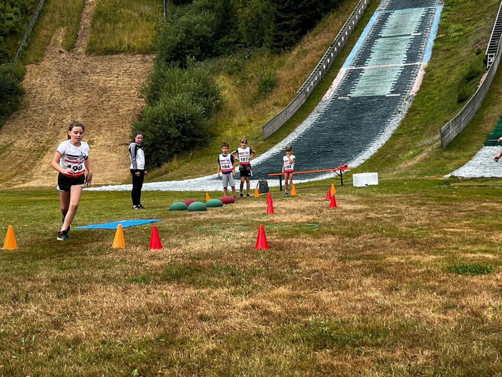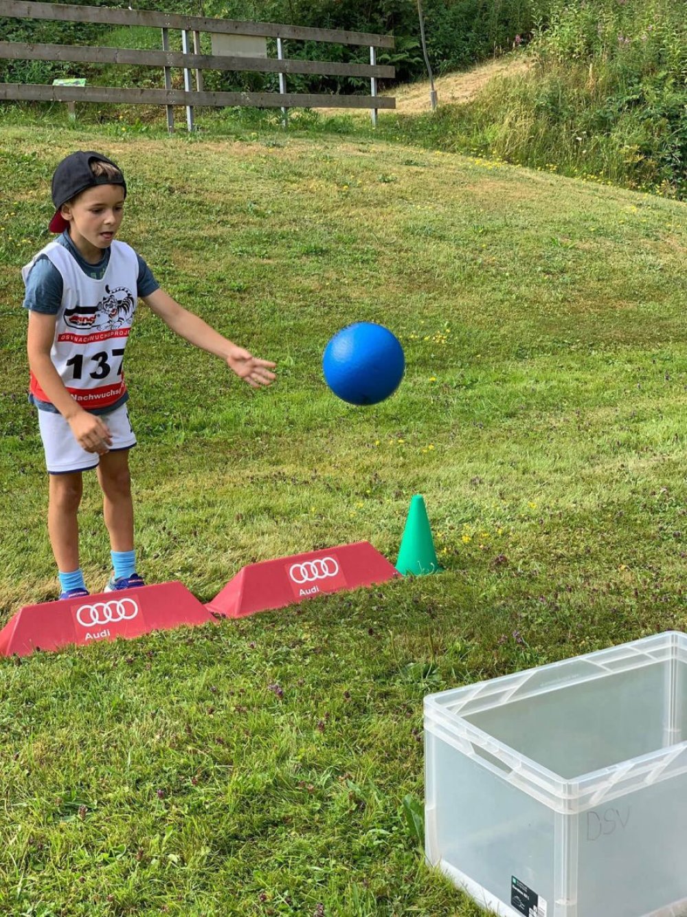 Am vergangenen Samstag hieß es für alle Kinder und Jugendlichen des Bezirk 3 (Mittlerer Schwarzwald desSkiverband Schwarzwald) „Auf die Plätze fertig los“ bei der DSV-Sommerolympiade. Der DSV (Deutscher Skiverband)hat alle Skivereine in Deutschland dazu eingeladen, bei dieser abwechslungsreichen Olympiade teilzunehmen. Alle teilnehmenden Vereine aus ganz Deutschland treten bei diesem Wettbewerb gegeneinander an. Es haben sich die Skizunft Brend, der Skiverein St. Georgen, der Ski-Club Schönwald und das Skiteam Schonach-Rohrhardsberg zusammengeschlossen und mit zahlreichen Helfern die Olympiade bei sommerlichen Temperaturen auf die Beine gestellt. So haben sich am vergangenen Samstag über 90 bewegungshungrige Kinder und Jugendliche an der Skisprungschanze in Schönwald eingefunden und waren gespannt darauf, welche sportlichen Herausforderungen sie bei dieser Olympiade erwarten würden. Die Kinder wurden in verschiedene Teams nach Alter mit maximal 5 Sportlerinnen und Sportler aufgeteilt. Die Teams durften sich selbst einen Team-Namen geben und hatten insgesamt fünf Stationen in den Bereichen Koordination, Ausdauer, Kraft, Schnelligkeit und Geschicklichkeit, zu meistern. So gabes beispielsweise die Station „Biathlon“, bei Ausdauer- und Zielfähigkeit getestet wurde. Das jeweilige Team startete gleichzeitig und musste ein abgestecktes Feld umlaufen. Nach jeder Runde musste ein Ball in eine Box getroffen werden. Die Station dauerte 10 Minuten und die Treffer mit dem Ball wurden gezählt. Pro Station erreichten die Teams gemäß den Altersklassen U8, U10, U12, U14 und U16, unterschiedliche Punkte. Dasbeste Team in jeder Altersklasse geht nun in die Bundeswertung ein. Nachdem die Kinder und Jugendlichen ihreAufgaben mit Bravour gemeistert hatten, fand vor Ort noch eine kleine Siegerehrung statt. Alle Sportler undSportlerinnen bekamen vom DSV noch einen DSV-Turnbeutel als Belohnung. Die Kinder und Jugendlichen sind nunnatürlich gespannt, wie sie in der Bundeswertung abgeschlossen haben. Jedoch müssen sie sich noch bis September gedulden. Erst dann werden dieBundesergebnisse durch den DSV bekanntgegeben. Alles in allem war es eine gelungene Sport-Veranstaltung, bei bestem Wetter, guter Laune und mit großartigen Leistungen der jungen Sportler und Sportlerinnen aus der Region.