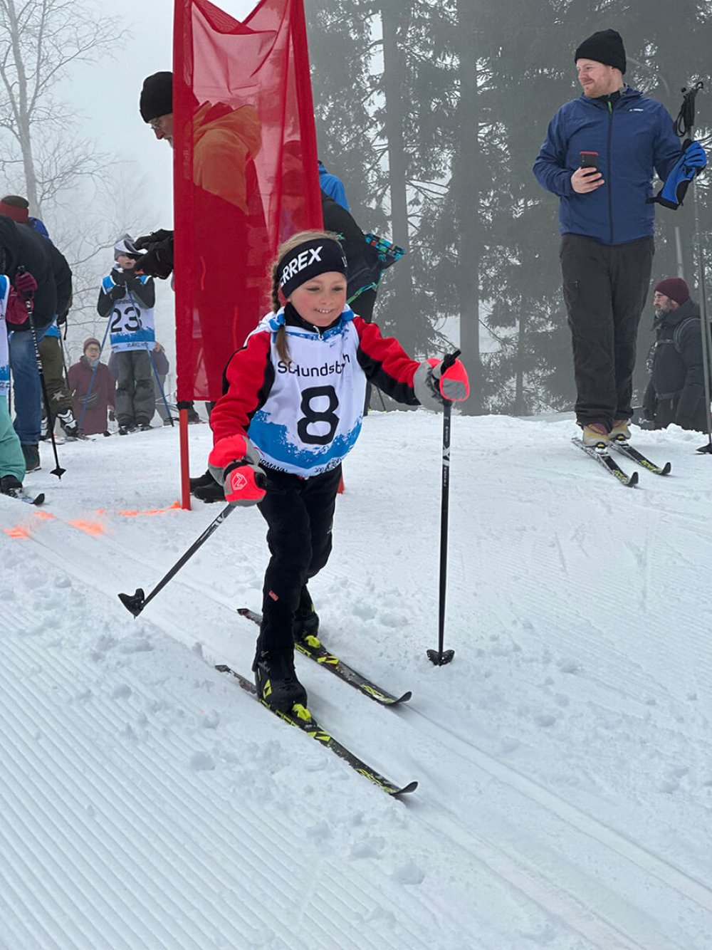 Bild 1: Hauerskopfpokallanglauf Kniebis - Die jüngste Läuferin im SZ Brend Team an diesem Tag - Leni Müller hat sichtlich Spaß beim Rennen und belegt einen super vierten Platz bei den Bambinis.