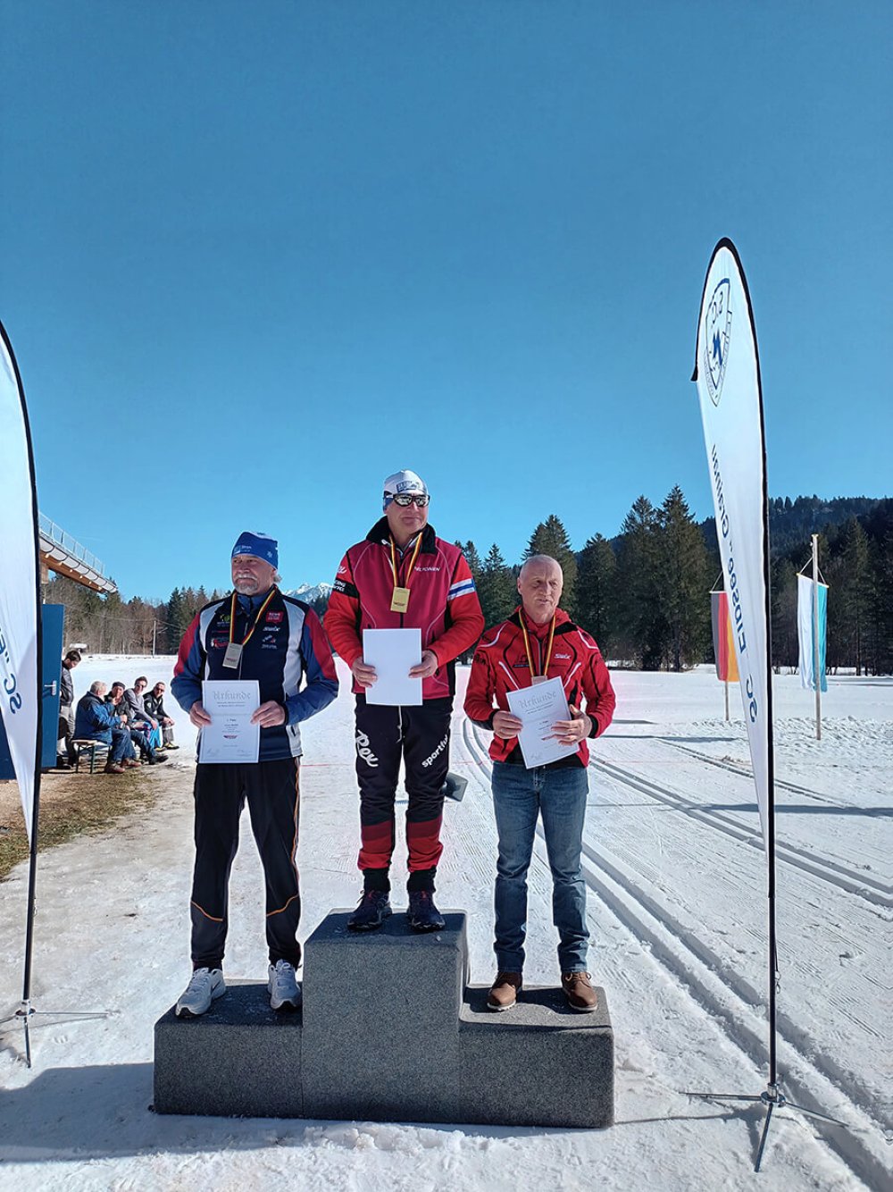 Bild 3 (ganz rechts auf Rang drei): Herbert Dold glänzt mit ausgezeichneten Leistungen bei den Deutschen Seniorenmeisterschaften im Skilanglauf in Garmisch-Partenkirchen.