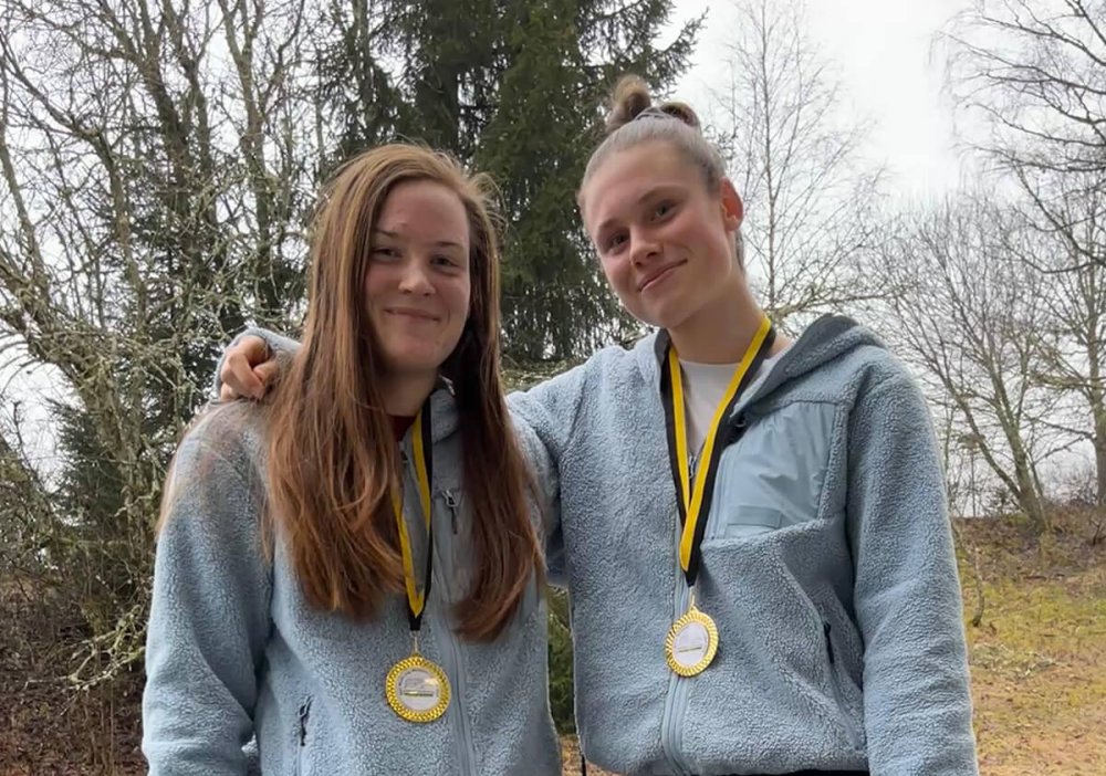 Bild 1: Mit der Gold-Medaille um den Hals, strahlen die Skizunft-Langläuferinnen Flora Kuß und Eva Dorer um die Wette.