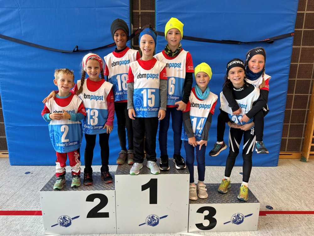 Am vergangenen Wochenende hieß es in St. Georgen-Peterzell „Auf die Plätze, fertig, los!“ für insgesamt acht junge Skizunft Brend-Sportler/innen. Da dieser Geländelauf zur Bezirksserie im Langlauf gehört, war die Motivation umso größer, eine gute Platzierung zu erreichen. Das Besondere an diesem Geländelauf ist, dass die Athleten und Athletinnen auf der Strecke verschiedene Geschicklichkeitsübungen absolvieren müssen, bevor sie weiterlaufen dürfen. Dazu gehörte unter anderem das Rückwärts- und Slalomlaufen. Im jüngsten Teilnehmerfeld bei den Bambinis belegte SZ-Brend Youngster Roman Mauz einen tollen zweiten Platz, Leni Müller schaffte es sogar ganz oben auf das Treppchen. Bei den Schülerinnen U8 belegte Anni Dorer einen super ersten Platz, gefolgt von ihrer Skizunft-Team-Freundin Runa Mauz. Bei den Schülern U9 glänzte Max Dorer und belegte den ersten Platz, sein Teamkollege Leo Ahmed schaffte es ebenfalls auf das Treppchen und wurde Dritter, gefolgt von Linus Quendt, ebenfalls von der Skizunft Brend. Lotta Faller, an diesem Tag die älteste in der Skizunft-Bande, belegte bei den Schülerinnen U9 einen tollen zweiten Platz. Alles in allem war es ein super Wettkampf und die Kinder waren alle glücklich über das tolle Team-Ergebnis.