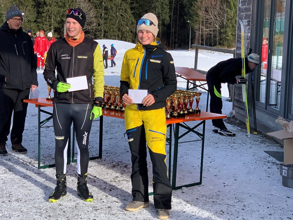 Von links: Jakob Kuß (Platz 1, Junioren U20). Über 7,2 km – 15:58 Minuten. Eva Dorer (Platz 1, Jugend 18 weiblich). Über 5,4 km - 14:28 Minuten.