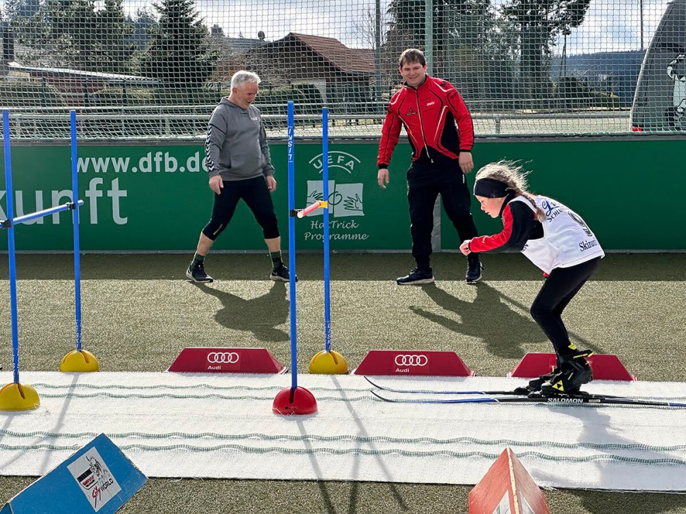 11.03.2024 bis 13.03.2024 An drei Vormittagen hieß es für insgesamt 130 Grundschulkinder aus den Grundschulen Neukirch, Gütenbach und der Anne-Frank-Schule, „Auf-die-Plätze-fertig-los“. Denn die Skizunft Brend lud zu einem abwechslungsreichen Sporttag in die Hallen der jeweiligen Grundschulen ein. Dort erwarteten die Kinder verschiedene Stationen, an welchen sie ihre Ausdauer und Geschicklichkeit unter Beweis stellen konnten. Normalerweise war dieser sportliche Tag bisher ein Skitag gewesen. Aber die Skizunft Brend ließ sich aufgrund des mangelnden Schnees den Spaß mit den Kindern nicht nehmen. So fanden die drei „Ski-Tage“ auch ohne Schnee statt. Es musste umorganisiert werden. Zur Freude aller Kinder musste jedoch nicht auf das Skifahren verzichtet werden. Das DSV-Mobil brachte einen nagelneuen Zauberteppich mit, auf welchem die Kinder ihre Langlauffähigkeiten testen konnten. Viele der Kinder standen zum ersten Mal auf Skiern und waren mit Begeisterung dabei. Auf dem großen Ninja Parcours lieferten sich die Kinder spannende Duelle, wer am schnellsten über die verschiedenen Hindernisse kommt. Strahlende und überraschte Kinderaugen gab es, als plötzlich „Skitty“, das deutschlandweit bekannte Maskottchen des Deutschen Skiverbandes in die Halle kam und mit den Kindern viel Quatsch machte. Highlight der Stationen war der interaktive „Bungee-Run“, welcher die Badische Sportjugend für diese Tage zur Verfügung stellte. Genau die richtige Mischung zwischen Spiel und Sport. Je zwei Kinder lieferten sich ein Duell in einer aufblasbaren Luftkissenbahn gegen den Widerstand eines hochelastischen Gummiseils. Das war Kräftemessen pur – Die Kinder waren sich alle einig: „Das war mega cool!“. Das Ziel der Skizunft Brend war erreicht. Insgesamt 130 Kinder hatten an diesen drei Tagen einfach Spaß an der Bewegung, wuchsen über ihre Kräfte hinaus und konnten viel Neues ausprobieren und wer weiß, vielleicht besucht das ein oder andere Kind in Zukunft einmal das abwechslungsreiche Training der Skizunft Brend.