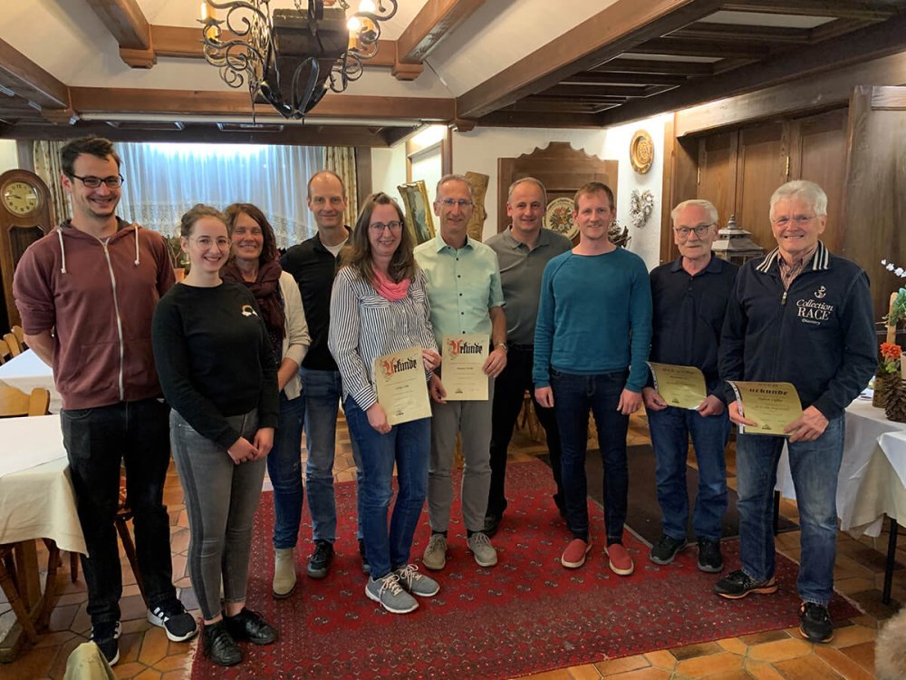 Zügig durchgeführt werden konnten die Neuwahlen, da sich viele Vorstandsmitglieder für eine Wiederwahl bereit erklärt hatten. So wurden Marius Jäger (2. Vorsitzender), Bernd Fleig (Schriftführer), Wolfgang Ganter (Sportwart nordisch), Michael Dorer (Loipenwart), Simon Baum (Fachwart sportliche Veranstaltungen), Franz Kleiser (Brendspuren), Gaby Dold (Kassenwart Brendspuren), Joachim Dorer (Streckenchef) und Stefan Lubowitzki in Ihren Ämtern bestätigt. Die Skizunft Brend freut sich besonders, dass mit Andrea Dorer und Christine Dorer, zwei neue Mitglieder die Arbeit im Vorstand unterstützen. Andrea Dorer übernimmt den Bereich Startnummern. Christine Dorer wird sich künftig dem Thema Vereinsentwicklung bei der Skizunft Brend widmen und ist mit ihrem großen Netzwerk im Sportbereich für den Verein ein Glückstreffer. 30 Mitglieder wurden für ihre langjährige Mitgliedschaft von 15,25 bzw. 40 Jahre mit der bronzenen, silbernen bzw. goldenen Ehrennadel des Vereins ausgezeichnet. Auf stolze 60 Mitgliedsjahre dürfen Jörg Fehrenbach, Hubert Löffler und Reinhold Nitz zurückblicken und erhielten dafür die Ehrenurkunde des Vereins.