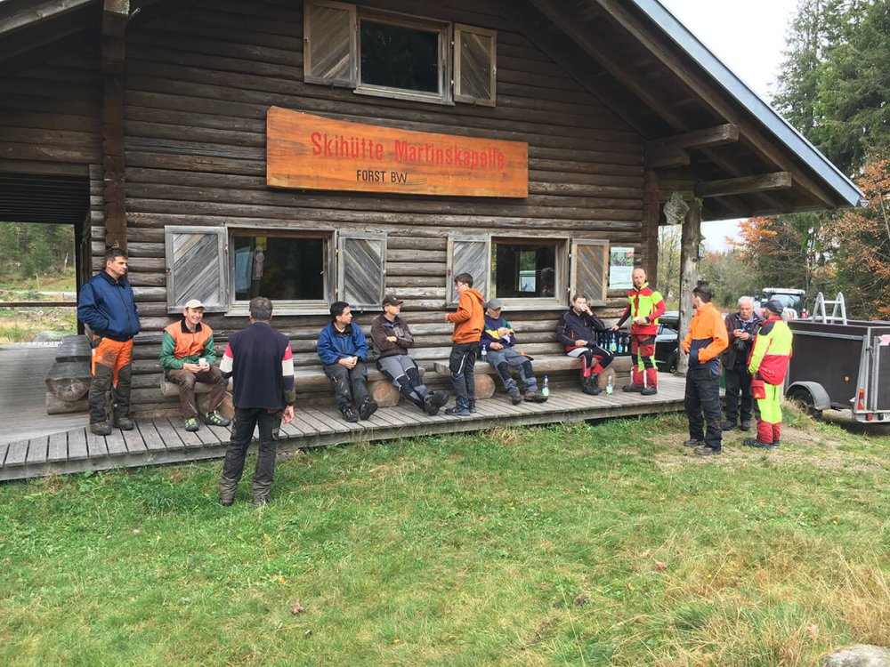 Bild: Nach getaner Arbeit trafen sich die Helfer der Skizunft Brend auf ein gemeinsames Vesper an der Blockhütte.
