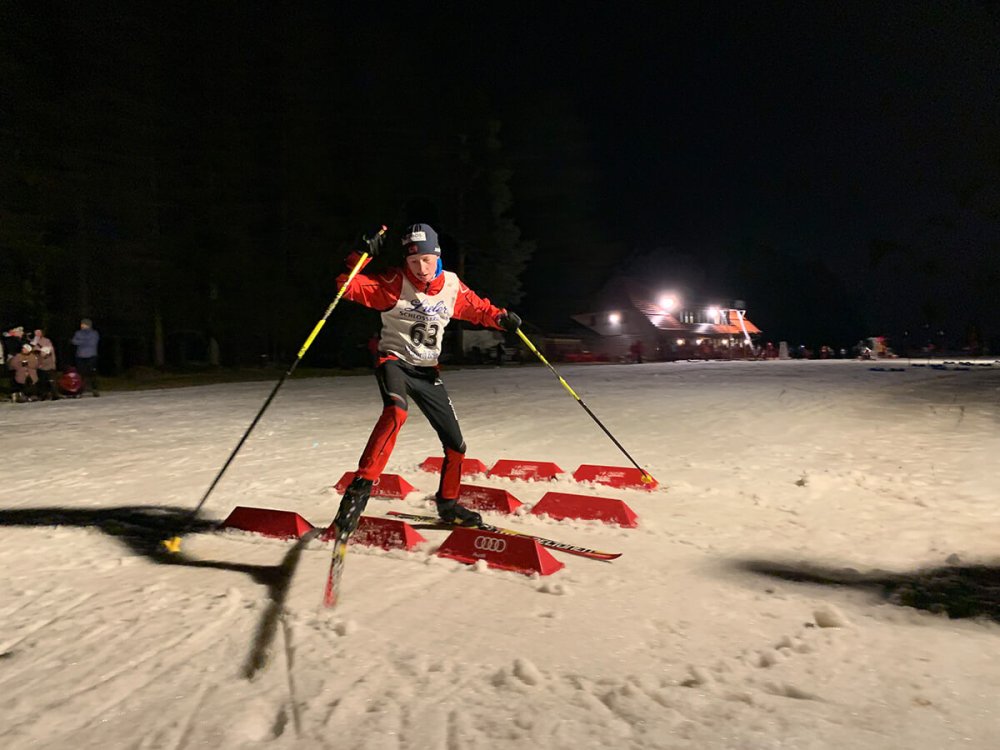 Bild 3: Leonard Weiß von der Skizunft Brend durchläuft eins der zahlreichen Hinternisse, welche auf der gut beleuchteten Sprint-Strecke eingebaut waren.